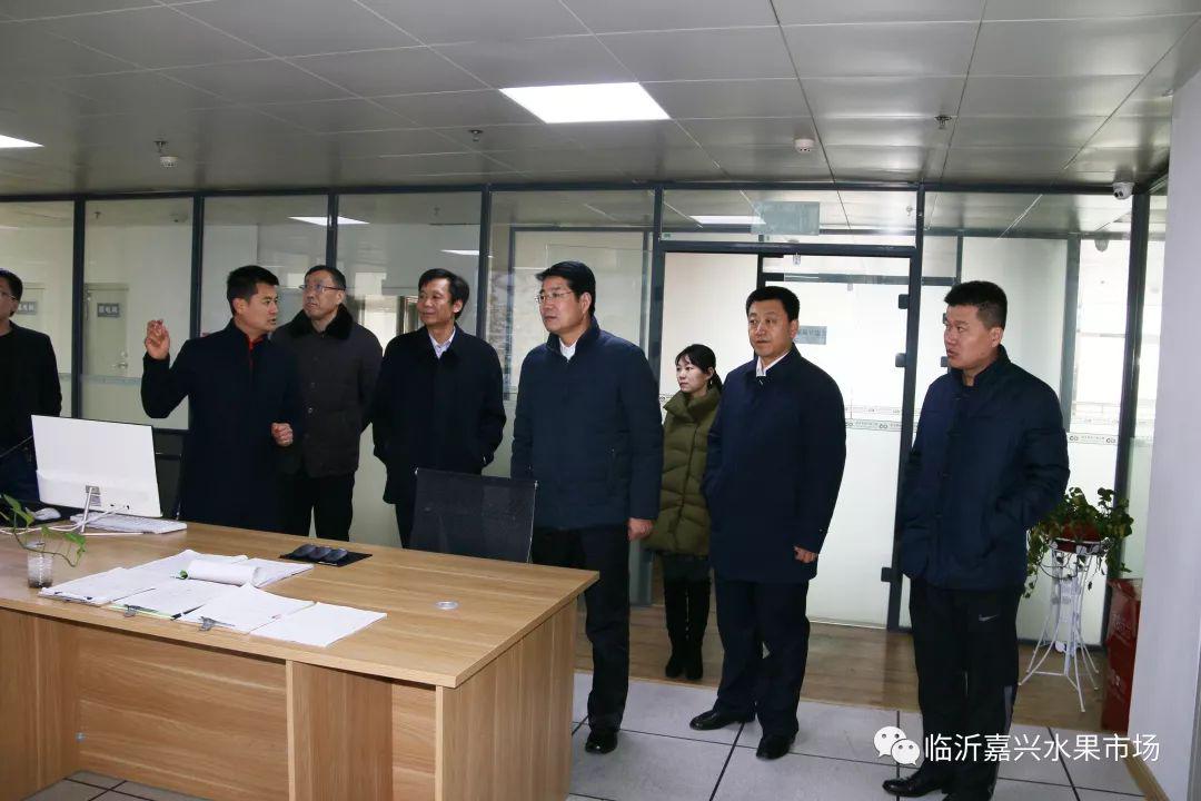 2月20日下午,临沂市市场监管局党组成员、副调研员孙思权、市场科科长马建平及市政法委、市文明办一行莅临临沂嘉兴水果市场检查指导工作,临沂国家高新区市场监管局副局长焦安镇、市场副总经理苏颜陪同。
